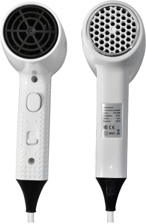 Особенности: Стильный дизайн. Удобный настенный держатель. Горячий и холодный воздух. Доп. электророзетка на корпусе настенного держателя.