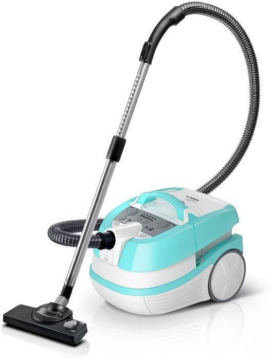 Serie 4 ProHygienic, Моющий пылесос, Дизайн-линия AquaWash&Clean, потребляемая мощность - 2000 Вт, Объем контейнера для воды- 5 л, Объем контейнера для сбора пыли 3,5л, Легкая очистка контейнера. Труба всасывания телескопическая. Насадки: пол/ковер, щелевая, для мягкой мебели, для твердых полов; Моющие насадки: большая для ковров и сбора жидкости, маленькая для мебельной обивки, подвижные ролики - 1, Количество обычных колес -2, HEPA13, Уровень шума 85 дБ. Регулятор мощности на корпусе. Электронная регулировка мощности с поворотным регулятором. Автосматывание сетевого шнура. Отсек для хранения насадок встроенный. Радиус действия 12м. Цвет Голубой