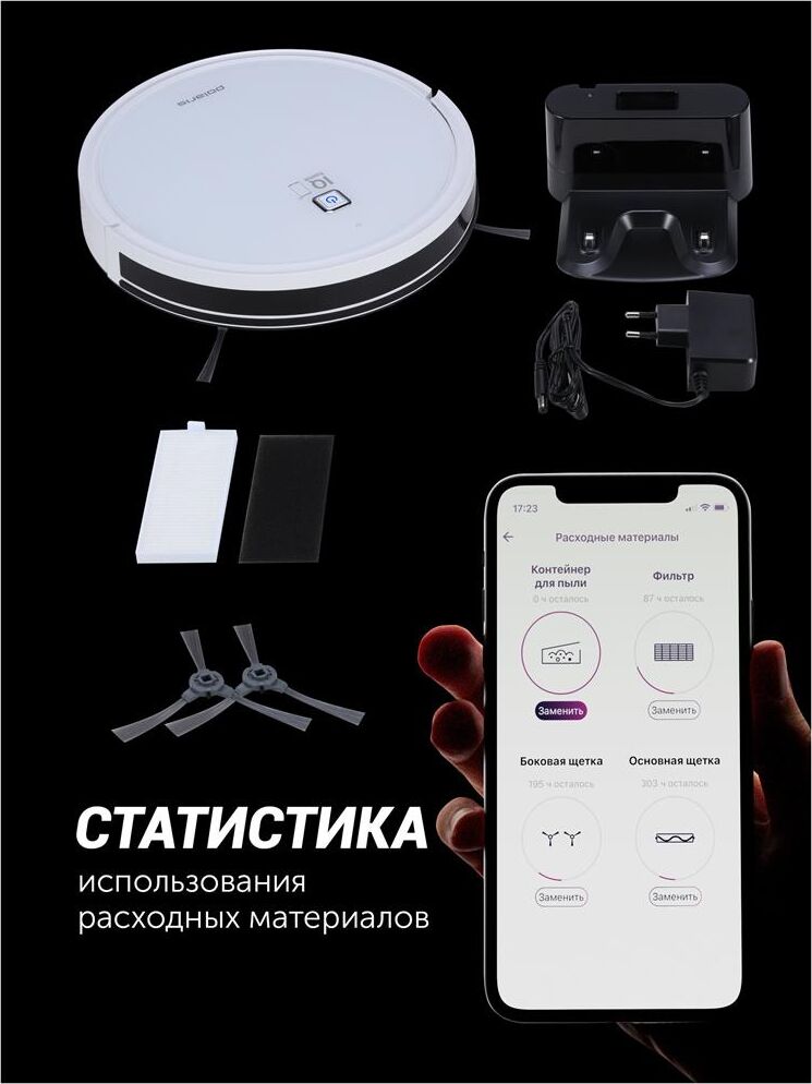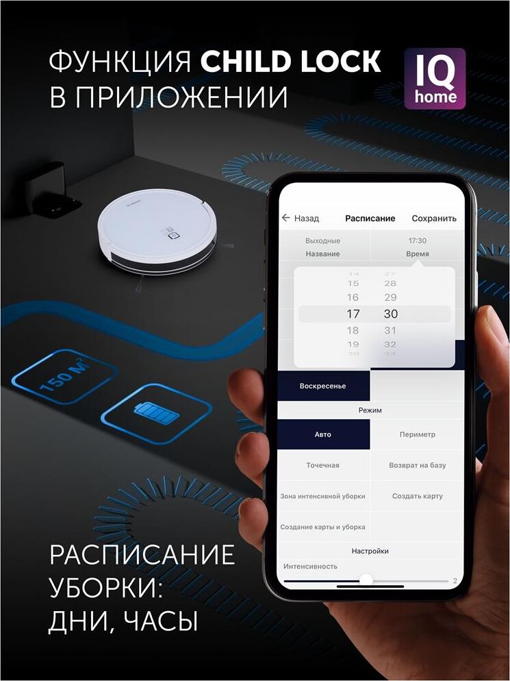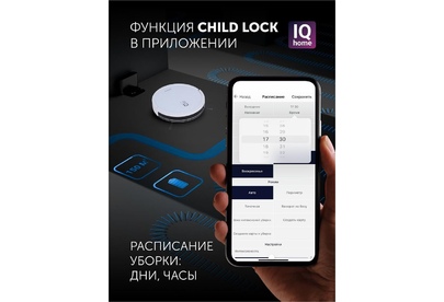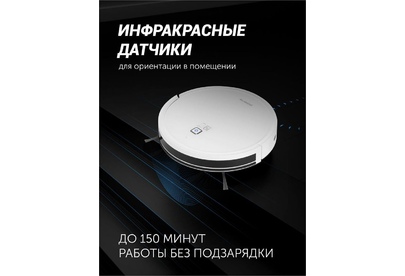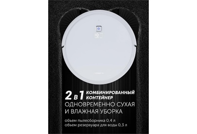 Мощность: 25. Объем пылесборника: 0.4. Регулировка мощности: в приложении. Общее количество насадок: 1. Бак для чистой воды: 0.3. Особенности: Возможность установить права администратора, многоуровневая защита данных, функция «Защита от детей».. Тип электропитания: от аккумулятора. Тип аккумулятора: Li-Ion. Емкость аккумулятора: 2600. Уровень шума: 65. Дополнительные датчики робота-пылесоса: инфракрасные датчики для ориентации в помещении. Габариты упаковки (ед) ДхШхВ: 0.44x0.13x0.36. Вес упаковки (ед): 3.15. Мобильное приложение: IQ Home. Часть умного дома: да. Зарядка робота-пылесоса: док-станция. Количество боковых щеток: 2. Количество основных щеток: 1. Высота преодоления порога: 1.5. Форма робота-пылесоса: круглый. Гарантия: 24 мес.. Время уборки: 150 минут. Время заряда: 120 - 300 минут. Цвет: белый/белый. Особенности пылесоса: поворачивающиеся колеса. Функции робота-пылесоса: автоматическая работа, автоматический поиск зарядного устройства, построение карты помещения, уборка по расписанию, управление с
