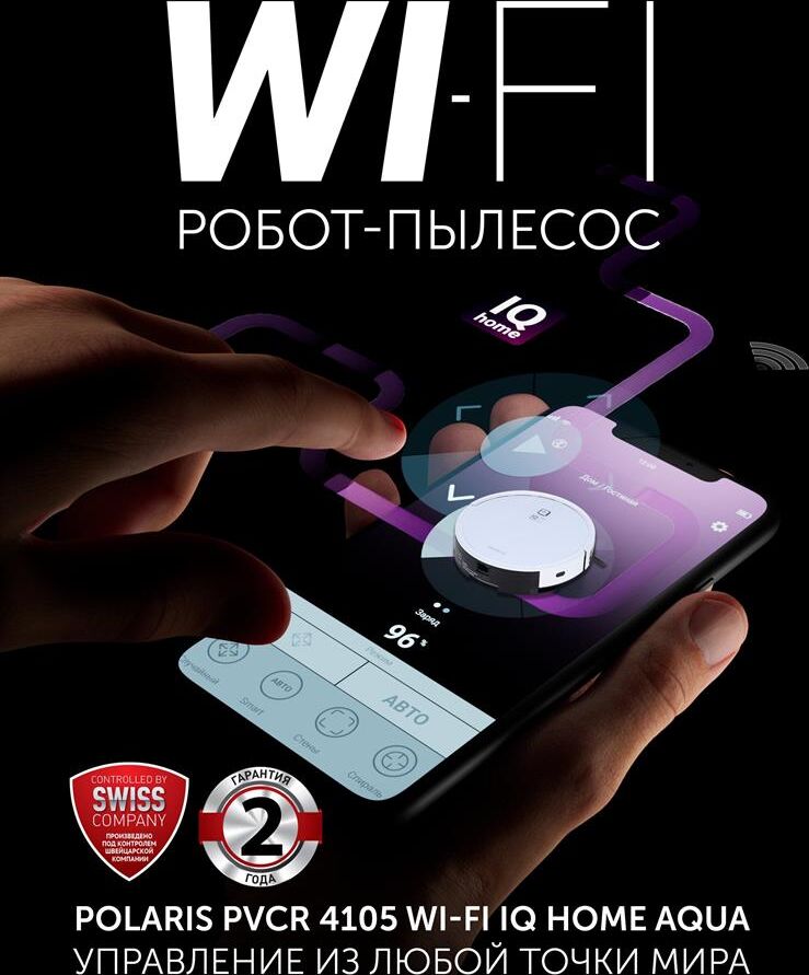Пылесос без мешка POLARIS Робот-пылесос IQ Home PVCR 4105, 25Вт, белый/белый
