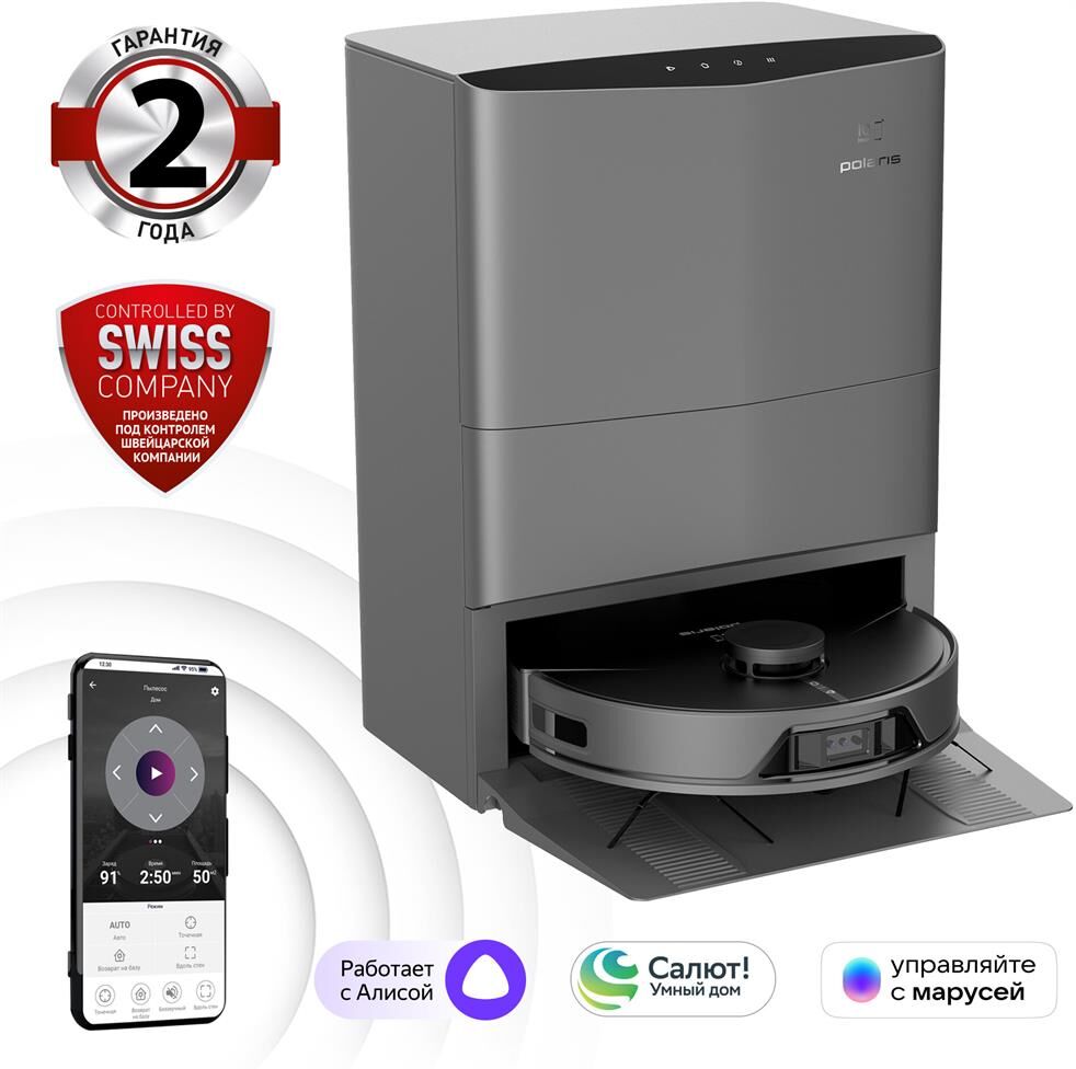 Пылесос без мешка POLARIS Робот-пылесос IQ Home PVCRAC 7750, 65Вт, графит/серый