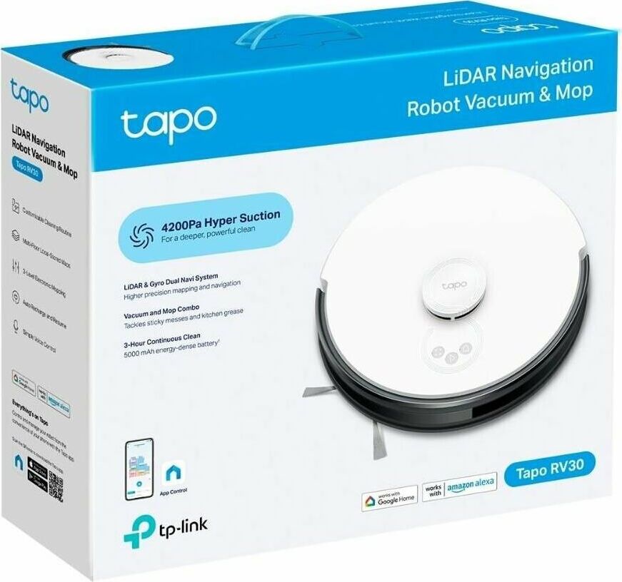 Пылесос без мешка TP-LINK Робот-пылесос Tapo RV30, 40Вт, белый/черный