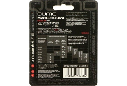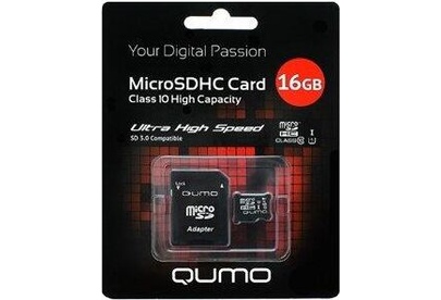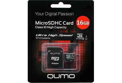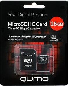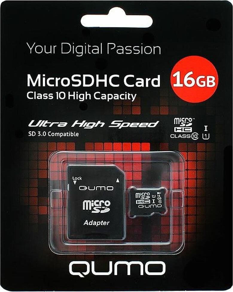 QUMO (18741) MicroSDHC 16GB Class10 UHS-I + адаптер (QM16GMICSDHC10U1)