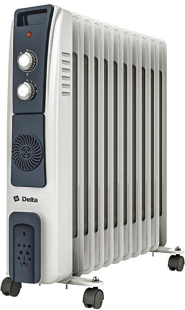 Обогреватель масляный с вентилятором o 11 секций o Современный дизайн o Быстрый и бесшумный нагрев o 3 режима регулировки мощности нагрева o Регулируемый термостат обеспечивает постоянную температуру в помещении o Световые индикаторы работы o Колеса и ручка для удобного перемещения o Отсек для хранения шнура o Защита от перегрева o Встроенный вентилятор мощностью 400 Вт для быстрого обогрева помещений o Максимальная площадь обогрева 25 м2 o Номинальная потребляемая мощность 2500 Вт o Диапазон номинальных напряжений: 220-240 В ~ 50 Гц o Цвет: светло-серый размер секции: 125x580мм