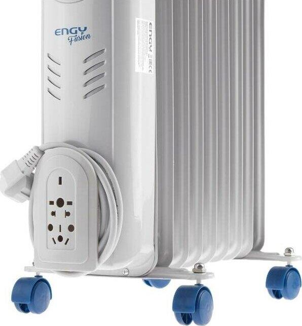 Радиатор масляный серия Fusion Мощность 2000 Вт 9 секций Компактный типоразмер секций Размеры секции (Ш*В) 120*500 мм Защита от перегрева Световой индикатор работы Регулируемый термостат Регулировка мощности Колёсики для перемещения Устройство для намотки сетевого шнура Гарантия 12 месяцев Напряжение 220-240В 50Гц