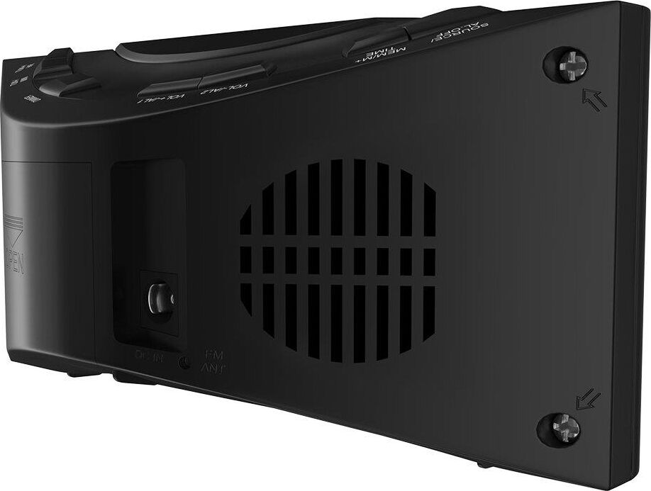Тип радиобудильник Таймер автоотключения от 10 до 90 мин. Повторный сигнал будильника да Количество независимых будильников 2 Мелодия будильника встроенная / радио Регулировка яркости дисплея да Радио Диапазоны тюнера FM 64-108 МГц Диапазоны тюнера AM 522 – 1620 КГц Количество запоминаемых каналов 10 AM / 10 FM Настройка частоты цифровая Дисплей Тип дисплея Led (светодиодный) Отображаемая информация время/частота Размер дисплея 1,2 дюйма (3,05 см) Цвет индикации дисплея зелёный Звук Звуковая система моно Количество динамиков 1 Мощность звука 0,5 Вт Сопротивление 8 Ом Питание Основной источник питания AC230 ~ 50Гц DC: 6В / 200мА Резервный источник питания да Количество батареек 2 шт. Формат батареек AAA Корпус Материал корпуса пластик Цвет черный Вес 166 гр. Размеры (ШхВхГ) 152x69x56 мм.