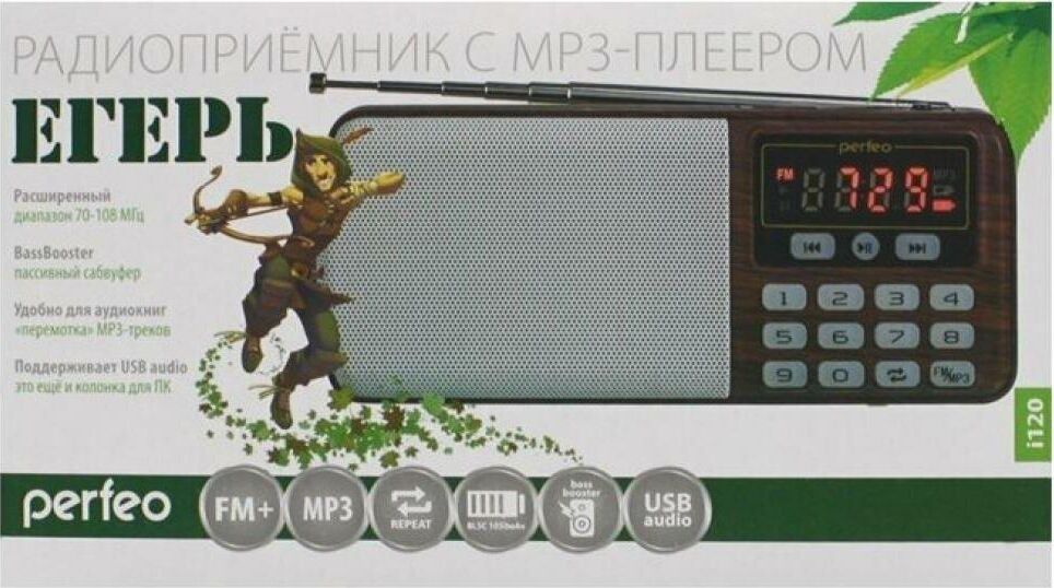 Радиоприемник PERFEO (i120-BK) ЕГЕРЬ - коричневый