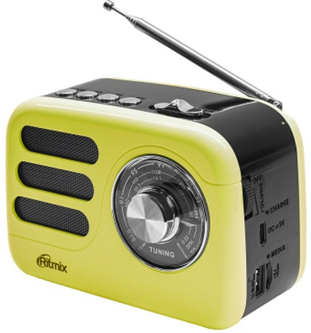 Радиоприёмник портативный трехдиапазонный FM/AM/SW, Bluetooth v.5.3, воспроизведение с USB и с карт памяти micro SD (до 32Gb), аналоговый тюнер, динамик 52мм 5 Вт 4 Ом, ручка настройки частоты и громкости, телескопическая антенна, питание (DC) Type C 5В 1A 3,5 Watt (Type-C - USB кабель 80cm в комплекте), 140*70*95 мм