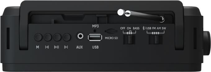 Диапазоны частот: FM/AM/SW Конфигурация акустики: стерео Выходная мощность: 2*2 Вт Bluetooth 5.0 Поддержка аудионосителей: USB/microSD Аудиовход AUX-in Воспроизведение форматов MP3, WAV, WMA, FLAC Встроенная батарея: 1800 мАч Питание: от сети, от батарей D (UM-1)*3 Телескопическая поворотная антенна