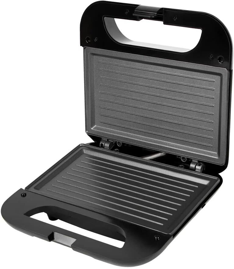 Универсальная сэндвичница мощностью 750 Вт с гриль-панелями позволяет быстро приготовить 4 прямоугольных бутерброда за один цикл без использования масла. Устройство с черным пластиковым корпусом и металлической рабочей поверхностью, покрытой антипригарным слоем, обеспечивает равномерное пропекание и легкую очистку. Работая от сети 220-240 В с кабелем 0,8 м, прибор оснащен индикатором включения и нагрева для контроля готовности. Безопасность и удобство использования обеспечивают термоизолированные ручки, защелка-фиксатор, антискользящие ножки и вертикальная подставка для компактного хранения. В комплекте: руководство пользователя и две коробки (подарочная и транспортировочная), что делает эту модель идеальным выбором для быстрого приготовления горячих бутербродов и тостов.
