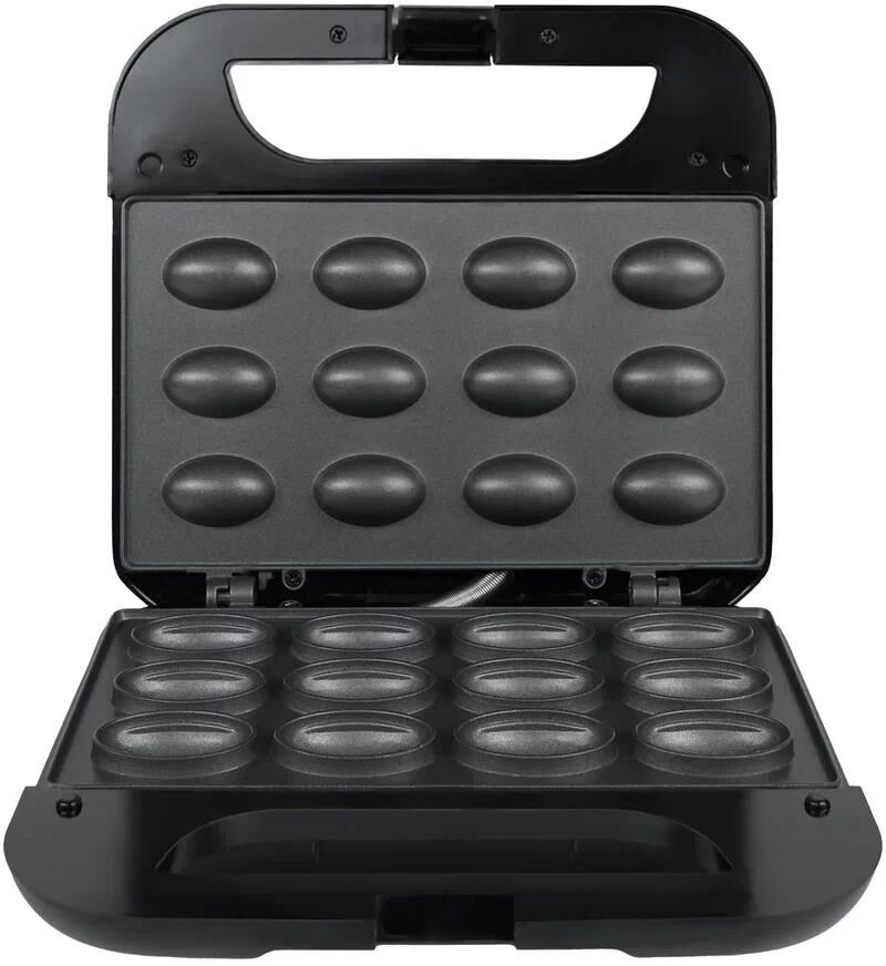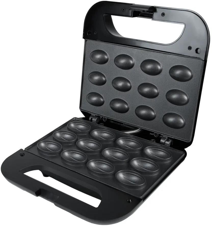 Практичная орешница мощностью 750 Вт предназначена для приготовления 12 половинок орешков за один цикл. Устройство с черным пластиковым корпусом и металлической рабочей поверхностью с антипригарным покрытием обеспечивает легкое извлечение готовых изделий. Работая от сети 220-240 В с кабелем длиной 0,8 м, орешница оснащена световым индикатором нагрева, что позволяет контролировать процесс приготовления. Удобные термоизолированные ручки и защелка-фиксатор обеспечивают безопасность использования, а антискользящие ножки гарантируют устойчивость на любой поверхности. Благодаря возможности вертикального хранения прибор не займет много места на кухне. В комплект входят руководство пользователя и две коробки (подарочная и транспортировочная), что делает эту модель отличным выбором для любителей домашней выпечки.