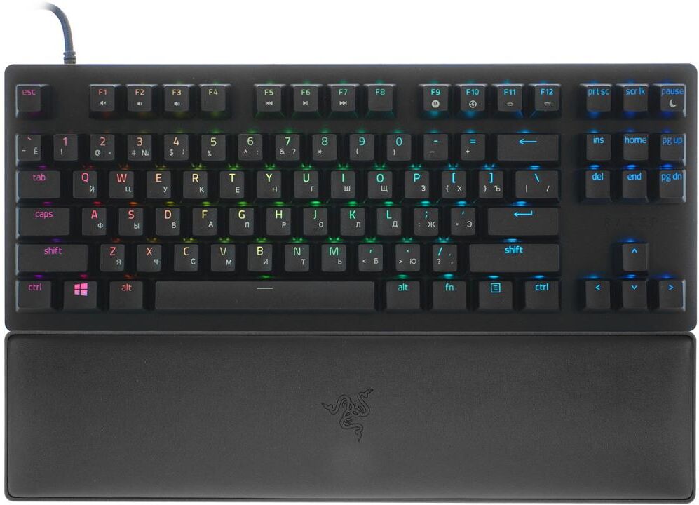 Интерфейс: USB. Подставка для запястий: есть. Для геймеров: да. Обычная/тонкая: обычная. Подсветка клавиш: есть. Клавиатура с русскими буквами: ДА. Особенности: Оптические переключатели Razer Linear Optical Switch (Red) тихие линейные. Ресурс переключателей до 100 миллионов нажатий. Частота опроса 8000 Гц, технология Razer HyperPolling. Эргономичная подставка под запястья из искусственной кожи. Полностью программируемые клавиши с записью макросов на лету.. Дизайн клавиш: квадратные. Длина кабеля: 1.8. Цвет английских букв: прозрачный. Цвет русских букв: прозрачный. Материал корпуса: алюминий. Вес: 0.75. Механическая: да. Тип соединения: проводная. Количество клавиш: 87. Тип подсветки: RGB. Тип механических переключателей: Red. Габариты упаковки (ед) ДхШхВ: 0.405x0.192x0.087. Вес упаковки (ед): 1.56. Страна производитель: Китай. Комплектация: Полную комплектацию товара уточняйте у производителя. Гарантия: 12 мес.. Размеры клавиатуры (ШхВхТ): 362 х 37 х 140 мм. Цвет: и черный. Интерфейс: USB. Цвет английских бу