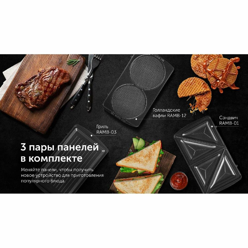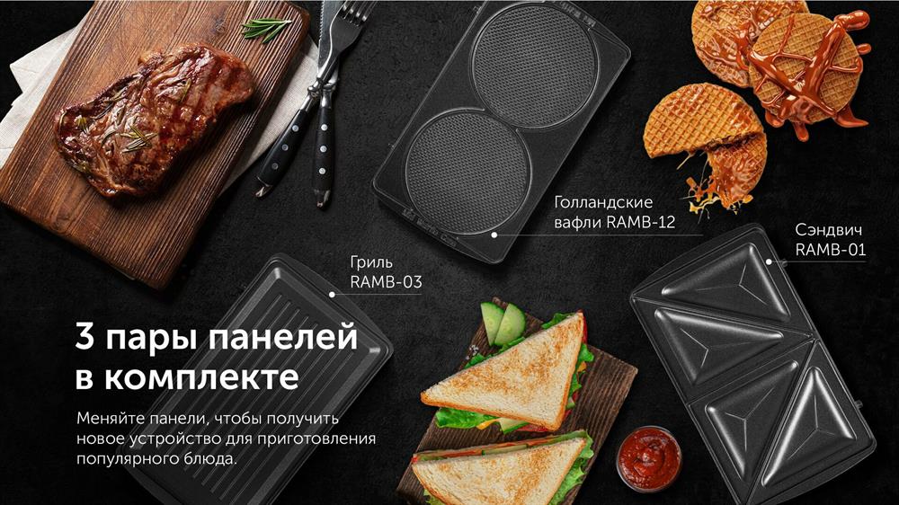 Серия 6 Тип управления механический Голосовой помощник — Поддержка на операционных системах — Мощность 700 Вт Напряжение 220-240 В, 50 Гц Защита от поражения электрическим током класс I Защита от перегрева да Цвет черный, сталь Материал корпуса металл, бакелит Количество комплектов съемных панелей 3 Материал съемных панелей металл Покрытие съемных панелей антипригарное Панели в комплекте панель "Гриль" для минипекарни RED (форма для приготовления на гриле) RAMB-03 панель "Голландские вафли" для минипекарни RED (форма для выпечки вафель) RAMB-12 панель "Сэндвич" для минипекарни RED (форма для горячих бутербродов) RAMB-01 Съемный поддон для сбора масла/жира есть Замок двухуровневый Индикатор питания есть Индикатор готовности к работе есть Размер одной панели 134 ? 236 ? 12 мм Длина шнура электропитания 0.8 м Переключатель питания да Габаритные размеры 240 ? 231 ? 97 мм Вес нетто 1,99 кг ± 3% Комплектация минипекарня, книга рецептов, руководство по эксплуатации, сервисная книжка