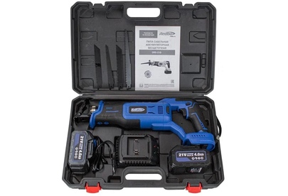 21В;4,0Ач, Li-Ion;величина хода 22 мм, глубина пропила металл 10мм, дерево 250мм; 0-3500 об/мин, 2 шт АКБ, 1 шт ЗУ