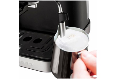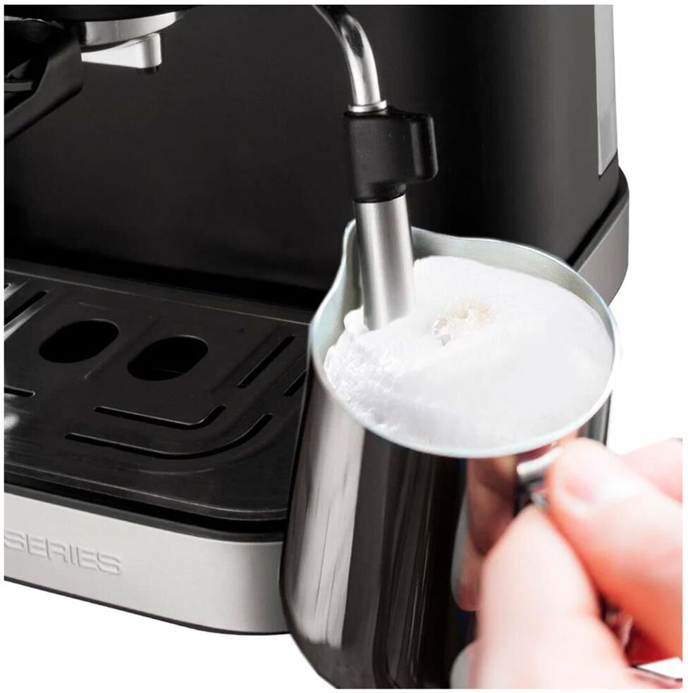 Тип кофеварки: рожковая. Используемый кофе: молотый. Регулировка размера порций: есть. Капучинатор: есть. Резервуар для воды: 1.5. Материал корпуса: металл/пластик. Тип нагревателя: термоблок. Приготовление капучино: возможно. Приготовление эспрессо: возможно. Тип капучинатора: ручной. Тип управления: сенсорное. Панель для подогрева чашек: есть. Информационный дисплей: есть. Подсветка дисплея: есть. Индикатор нагрева: есть. Поддон для капель: съемный. Индикатор уровня воды: есть. Длина сетевого кабеля: 0.7. Вес товара: 3.4. Габариты упаковки (ед) ДхШхВ: 0.335x0.31x0.34. Вес упаковки (ед): 4.86. Гарантия: 12 мес.. Мощность: 1050 Вт. Размеры (ШхВхГ): 22 х 28.5 х 36 см. Цвет: серебристый / черный. Тип кофеварки: рожковая. Встроено: капучинатор. Мощность: 1050 Вт. Тип кофе: молотый. Функции: настройка размера порций. Материал корпуса: металл/пластик