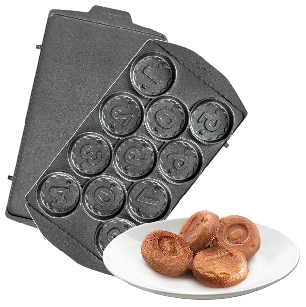 Универсальные сменные панели для любой мини-пекарни «Мультипекарь» REDMOND серии 6! Размер одной панели 133х254х18 мм. Печенье или пряники в виде цифр в кружках можно использовать для развивающих математических игр с ребенком. Лакомства также могут украсить домашний торт, стать оригинальным сладким подарком ко дню рождения или использоваться в качестве съедобных ставок для настольных игр в компании друзей! Панели изготовлены из прочного металла, они долговечны и просты в уходе. Антипригарное покрытие позволяет готовить без масла.