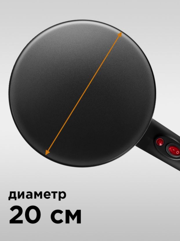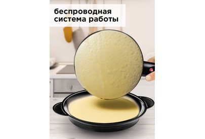 Мощность 800 Вт. Материал корпуса: пластик. Антипригарное покрытие рабочей пластины. Диаметр рабочей поверхности – 20 см. Светодиодная индикация. Беспроводная рабочая часть. Подставка с отсеком для хранения электрошнура и противоскользящими вставками. Длина электрошнура 0,7 м. Вращение на 360°. Ненагревающаяся ручка. Книга "20" рецептов" в подарок.