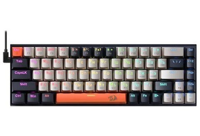 Интерфейс: USB. Для геймеров: да. Обычная/тонкая: обычная. Подсветка клавиш: есть. Клавиатура с русскими буквами: ДА. Дизайн клавиш: квадратные. Длина кабеля: 1.8. Тип элементов питания: от USB порта. Цвет английских букв: прозрачный. Цвет русских букв: прозрачный. Материал корпуса: пластик. Вес: 0.62. Подходит для ТВ: да. Механическая: да. Тип соединения: проводная. Количество клавиш: 68. Тип подсветки: RGB. Тип механических переключателей: Redragon+Melt-Gold. Габариты упаковки (ед) ДхШхВ: 0.36x0.155x0.065. Вес упаковки (ед): 0.62. Страна производитель: Китай. Гарантия: 18 мес.. Размеры клавиатуры (ШхВхТ): 310 х 34 х 104 мм. Цвет: и черный/оранжевый/серыйчерный. Особенности клавиш: кнопки-дубли клавиши мыши. Конструктив: механическая. Интерфейс: USB. Цвет русских букв: прозрачный. Особенности: подходит для ТВ, для геймеров. Цвет английских букв: прозрачный. Тип соединения: проводная. Встроено: подсветка клавиш