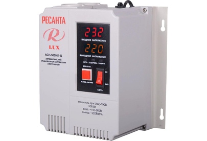 Стабилизатор напряжения серии LUX Настенный. Тип стабилизации – цифровой. Диапазон входного напряжения, В – 140-260. Номинальная мощность, кВт – 0,5. Время регулирования, мс –