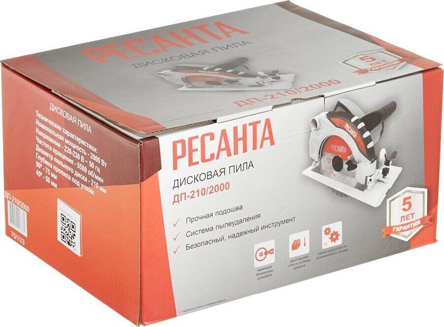 Мощность - 2000Вт. Макс. обороты - 5500об/мин. Наружный диаметр - 210мм. Посадочный диаметр - 30мм. Макс. глубина пропила - 75мм. Возможность использования с направляющей шиной, возможность работы по металлу.