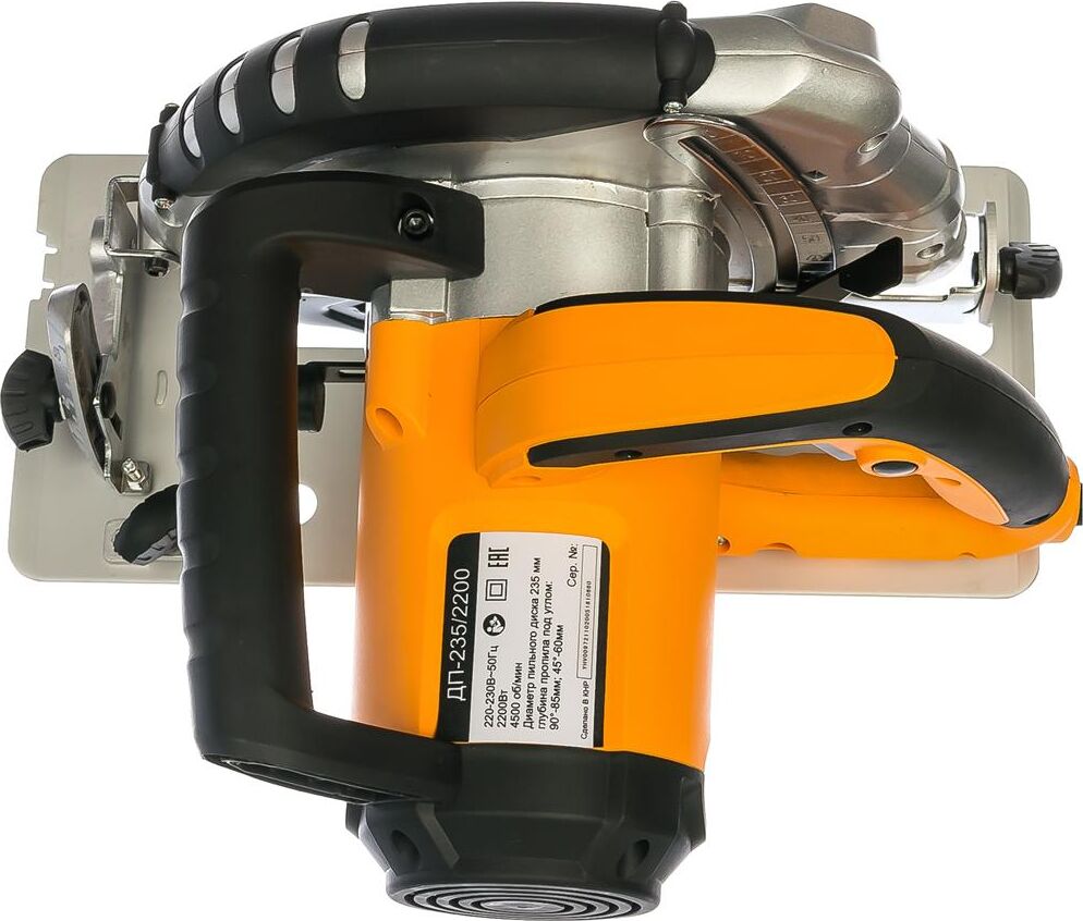 Мощность - 2200Вт. Макс. обороты - 5500об/мин. Наружный диаметр - 235мм. Посадочный диаметр - 30мм. Макс. глубина пропила - 85мм. Возможность использования с направляющей шиной, возможность работы по металлу.