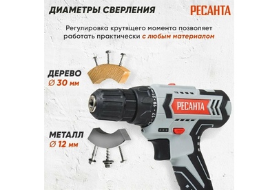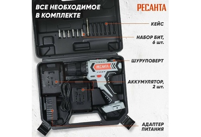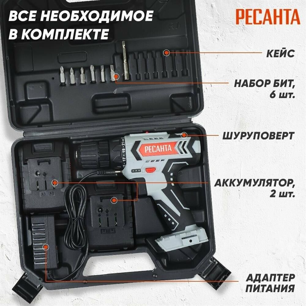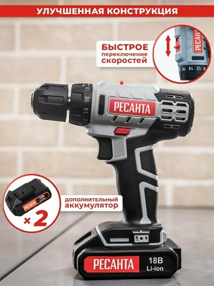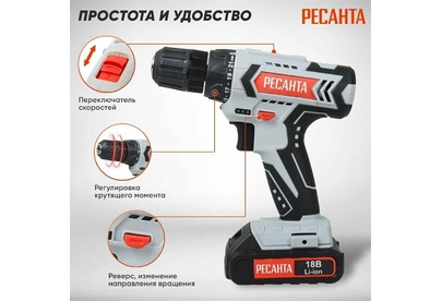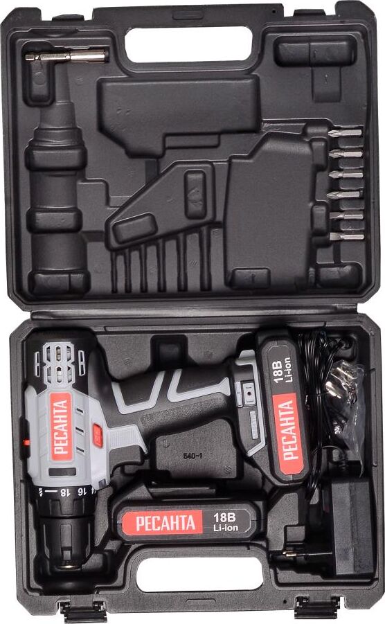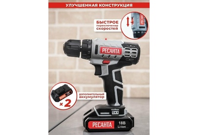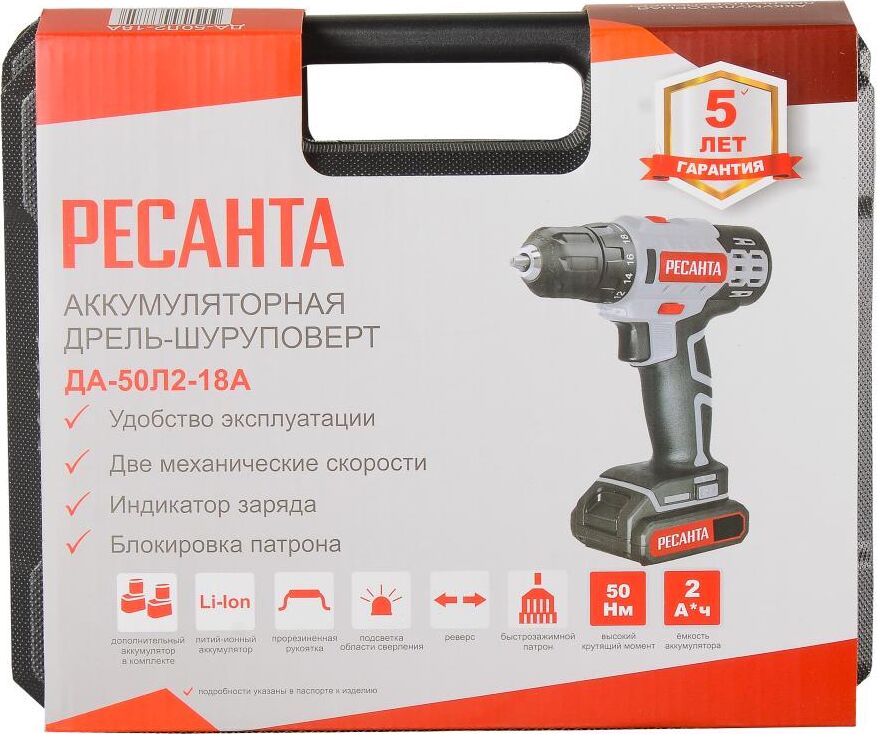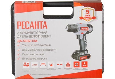 РЕСАНТА Дрель-шуруповерт ДА-50Л2-18А аккум. патрон:быстрозажимной (кейс в комплекте) (75/14/9)