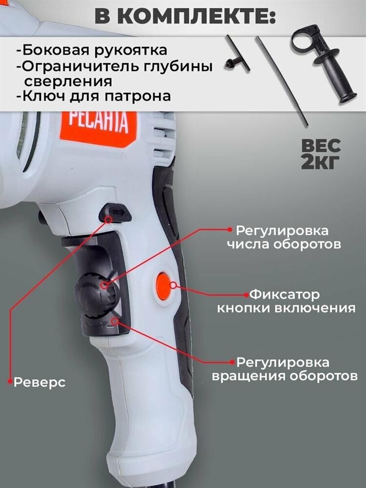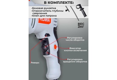 Номинальная мощность, Вт – 850. Частота вращения, об/мин – 0-3000. Тип патрона – ключевой.