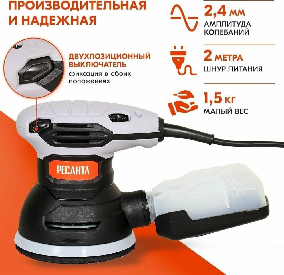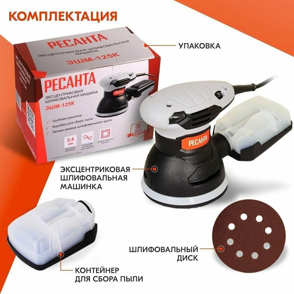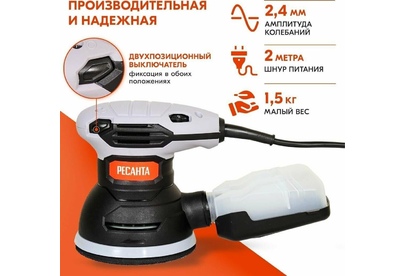 РЕСАНТА Эксцентриковая шлифмашина ЭШМ-125К 300Вт D125мм (75/6/4)