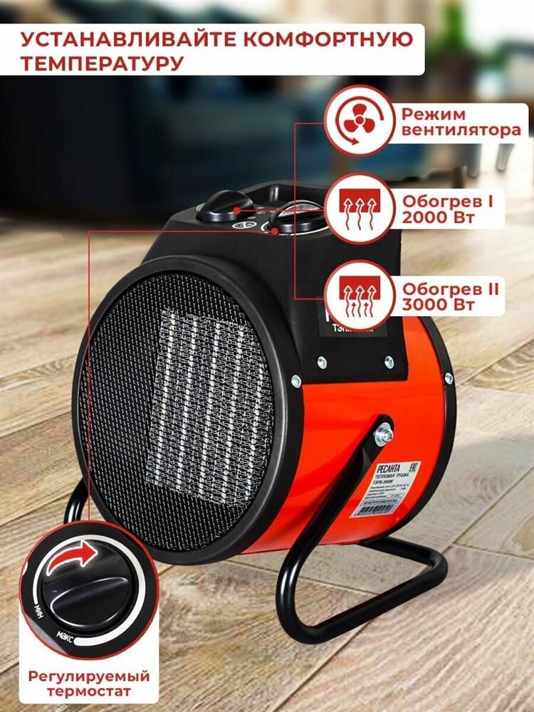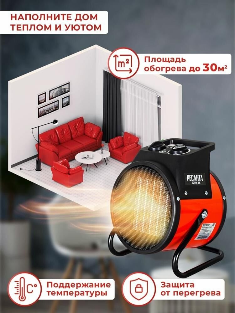 РЕСАНТА Электрическая тепловая пушка ТЭПК-3K, 3кВт, красный [67/1/41]