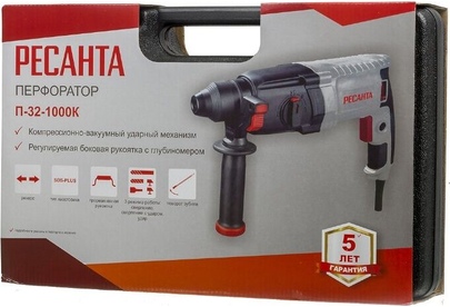 Номинальная мощность, Вт – 1000. Частота вращения, об/мин – 0-1100. Сила удара, Дж – 5,2. Система зажима – SDS-plus.