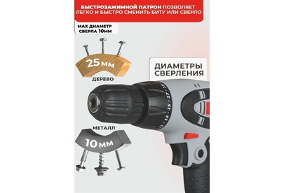 Мощность - 550Вт. Макс. обороты - 800об/мин. Тип патрона - БЗП. Диаметр патрона - 10мм. Макс. крутящий момент - 25Нм. Макс. диаметр сверления металл/дерево - 10/25мм. Электронная регулировка числа оборотов.