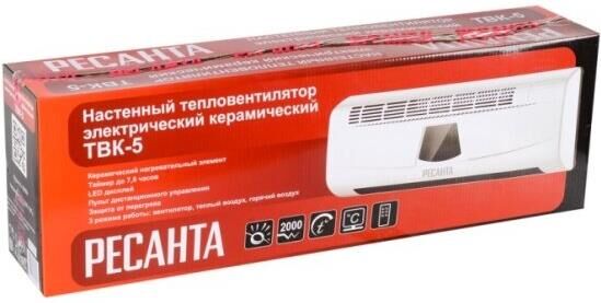 РЕСАНТА Тепловентилятор керамический ТВК-5, 2000Вт, с термостатом, 2 режима, с пультом, белый [67/2/