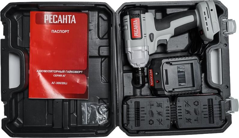 РЕСАНТА Ударный гайковерт АГ-300/20Li, 2Ач, с двумя аккумуляторами [75/24/3]