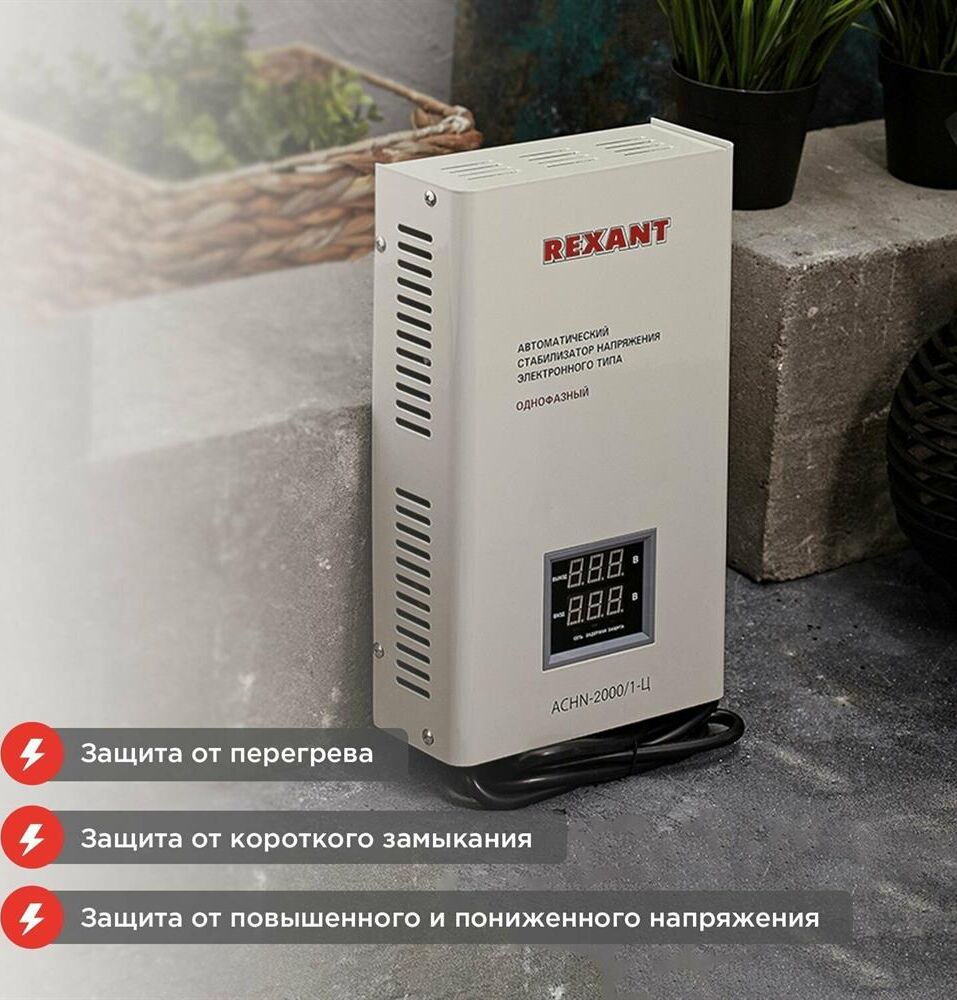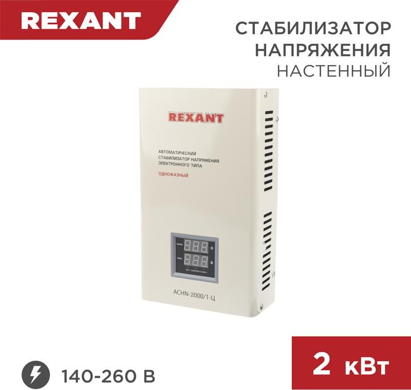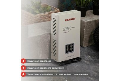 Однофазный стабилизатор переменного напряжения релейного типа марки REXANT используется для предотвращения поломки бытовых и промышленных электроприборов вследствие перепадов напряжения в сети. Устройство стабилизирует входное напряжение в случае отклонения от нормы, что предотвращает внезапную поломку оборудования. Превышение предельно возможного значения напряжения приводит к аварийному отключению нагрузки. Имеет широкий рабочий диапазон входного напряжения и высокую скорость реакции на перепады. Оснащен варистором, который сглаживает импульсные помехи. Предусмотрена высокая точность стабилизации напряжения.