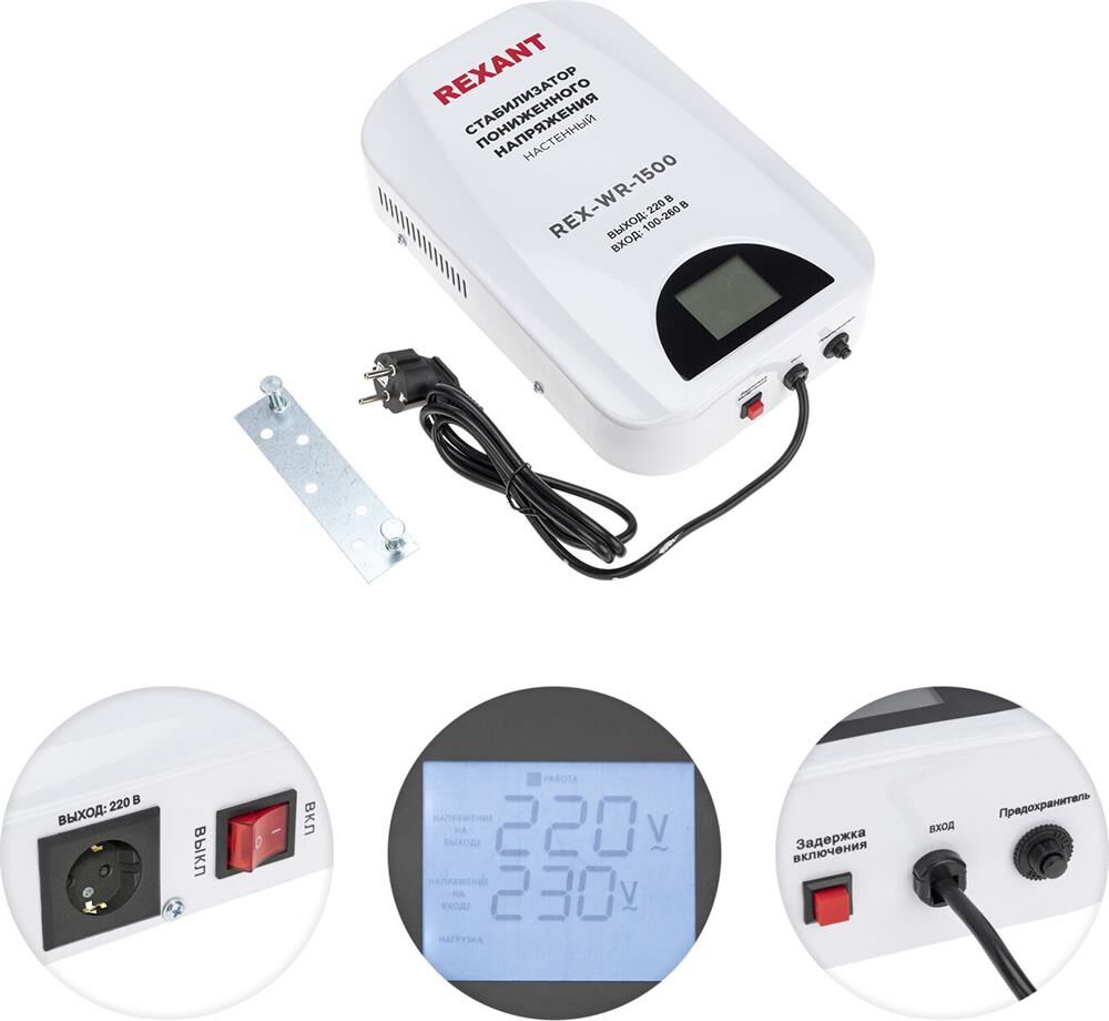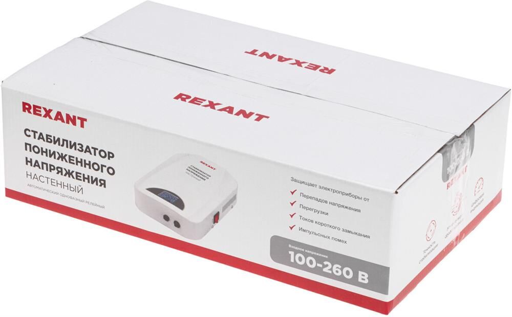 Однофазный стабилизатор переменного напряжения релейного типа марки REXANT предназначены для поддержания стабильного напряжения сети и питания электрооборудования и бытовых приборов. При отклонении входного напряжения от нормы устройство стабилизирует его, благодаря чему подключенное к нему оборудование можно использовать без опасности вероятных поломок. Оснащен индикацией основных режимов работы, а также уровней напряжения на входе и выходе. Номинальная величина выходного напряжения составляет 220 В ± 10%. Наличие варистора позволяет сглаживать импульсные помехи. Устройство незаменимо в случае необходимости защитить оборудование от поломок вследствие перепадов напряжения в сети. Опция байпас позволяет переключать электропитание нагрузки на входную сеть в обход электронной схемы устройства в период, когда его использование нецелесообразно. Например, при низкой нагрузке на сеть.