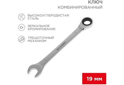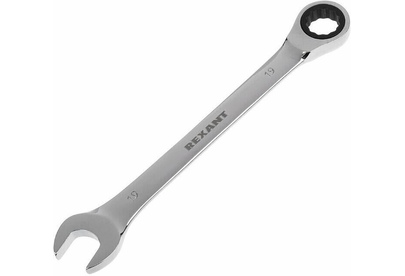 REXANT (12-5813-1) Ключ комбинированный трещоточный 19мм, CrV, зеркальный хром