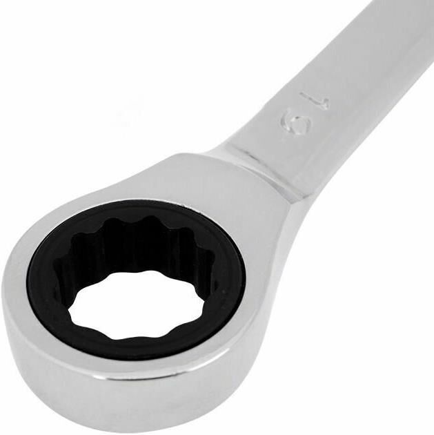 Комбинированный трещоточный ключ REXANT представляет собой инструмент с рожковым профилем с одной стороны и накидным профилем с трещоточным механизмом – с другой. Предназначен для монтажа и демонтажа резьбовых соединений: болтов, гаек, муфт и т. д. Благодаря трещоточному механизму отсутствует необходимость в перекидывании инструмента, что облегчает процесс работы. Материал изготовления – прочная хромованадиевая сталь, отличающаяся жесткостью и устойчивостью к износу. Хромовое покрытие защищает изделия от образования ржавчины и увеличивает срок их службы. Размер ключа – 19 мм, количество граней – 12. Простота в обращении и доступ к любому крепежу делают ключ незаменимым инструментом в быту, слесарных мастерских и на производстве.
