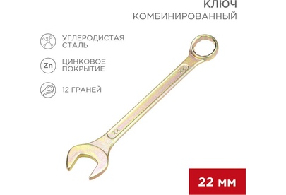REXANT (12-5814-2) Ключ комбинированный 22мм, желтый цинк
