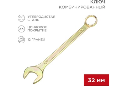 REXANT (12-5818-2) Ключ комбинированный 32мм, желтый цинк