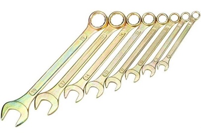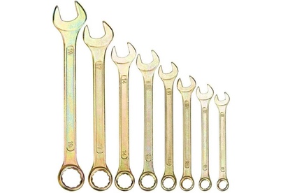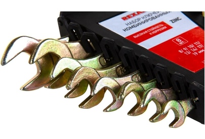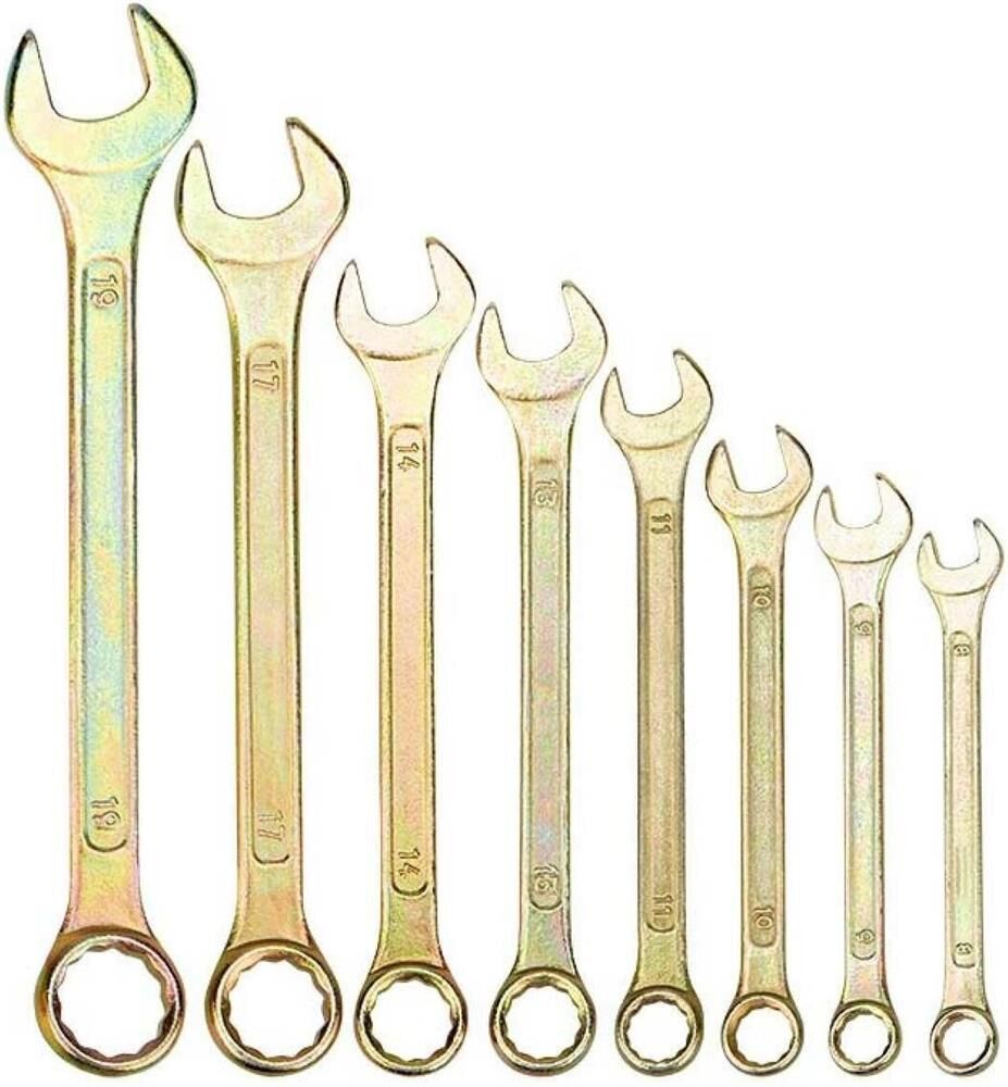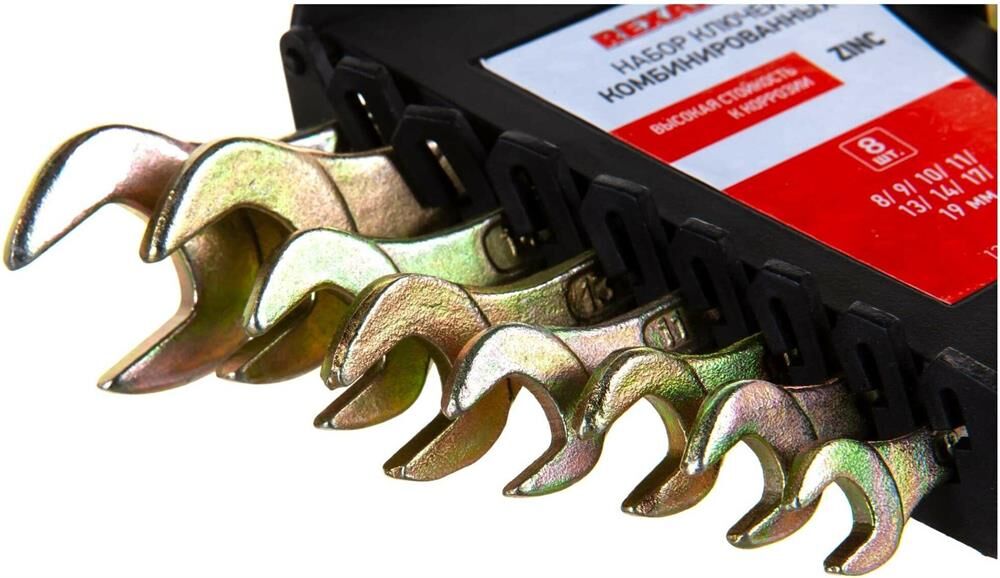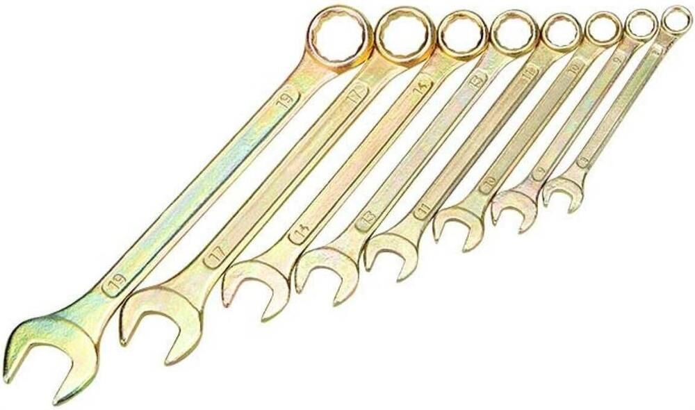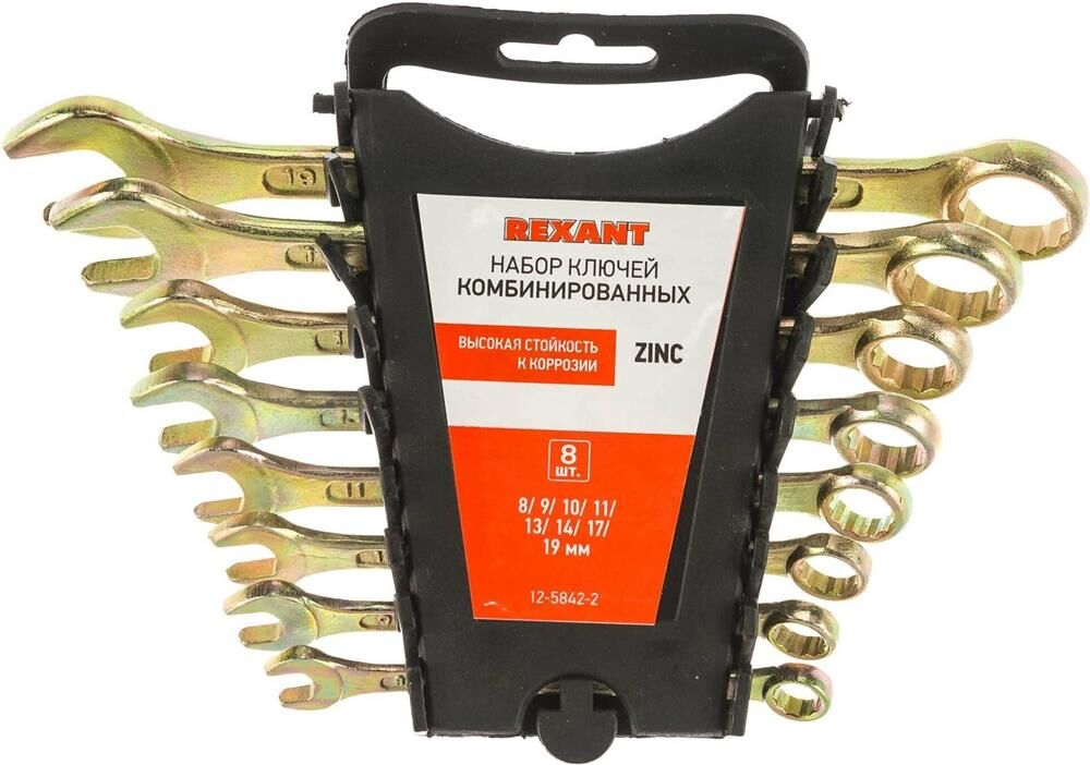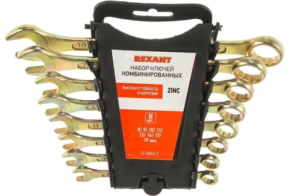 REXANT (12-5842-2) Набор ключей комбинированных (8-11, 13, 14, 17, 19мм), 8 шт, желтый цинк