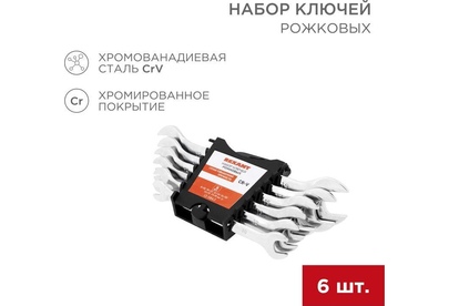 REXANT (12-5843) Набор ключей рожковых (8-19мм), 6 шт, CrV, зеркальное хромирование