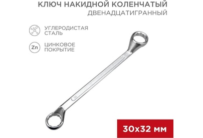 REXANT (12-5866-2) Ключ накидной коленчатый 30х32мм, цинк