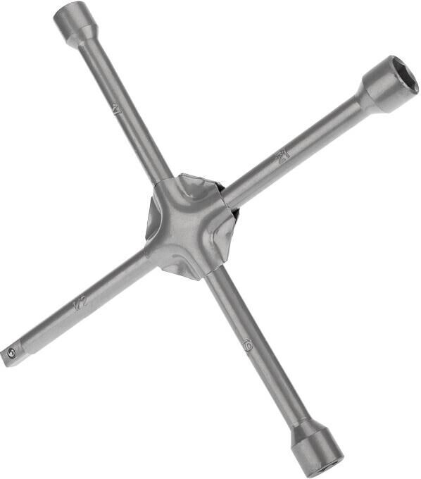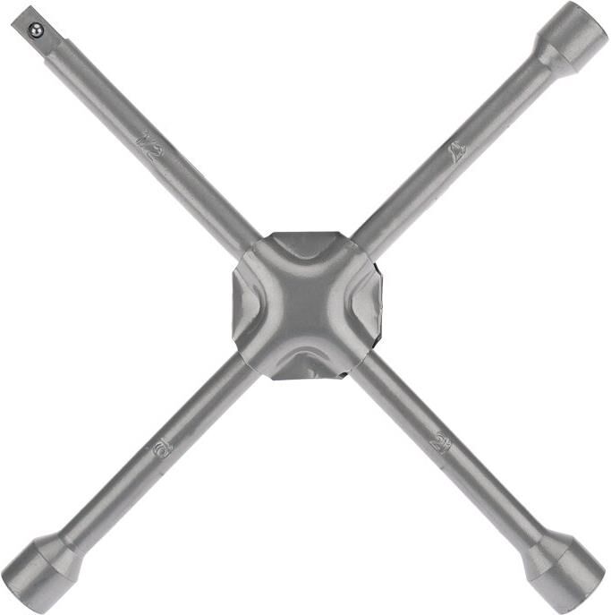 Ключ-крест баллонный предназначен для смены колес грузовых или легковых автомобилей. Усиленная крестовая конструкция обеспечивает надежность применения. Инструмент изготовлен из высококачественной углеродистой стали 45. Размер головок: 17х19х21мм х головка 1/2". Твердость материала рабочих частей ключа составляет 41 HRС.