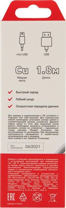 REXANT (18-1134) Кабель USB-mini USB/PVC/white/1,8m/REXANT