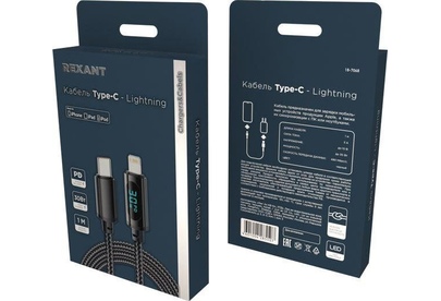REXANT (18-7068) Type-C ? Lightning для Apple, 3А, 1м, в черной нейлоновой оплетке, с LED дисплеем