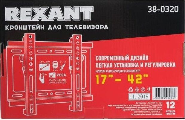 REXANT (38-0320) Кронштейн для телевизора 17"-42"