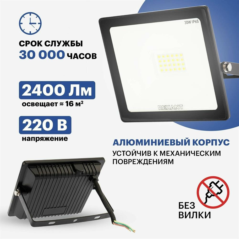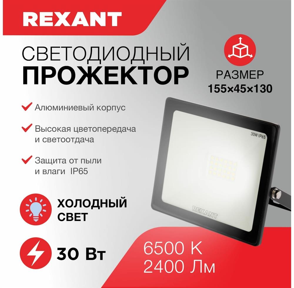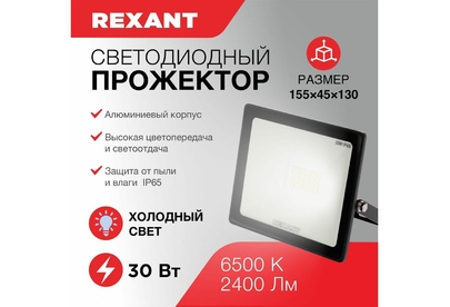 REXANT (605-003) 30 Вт 200?260В IP65 2400 лм 6500 K холодный свет
