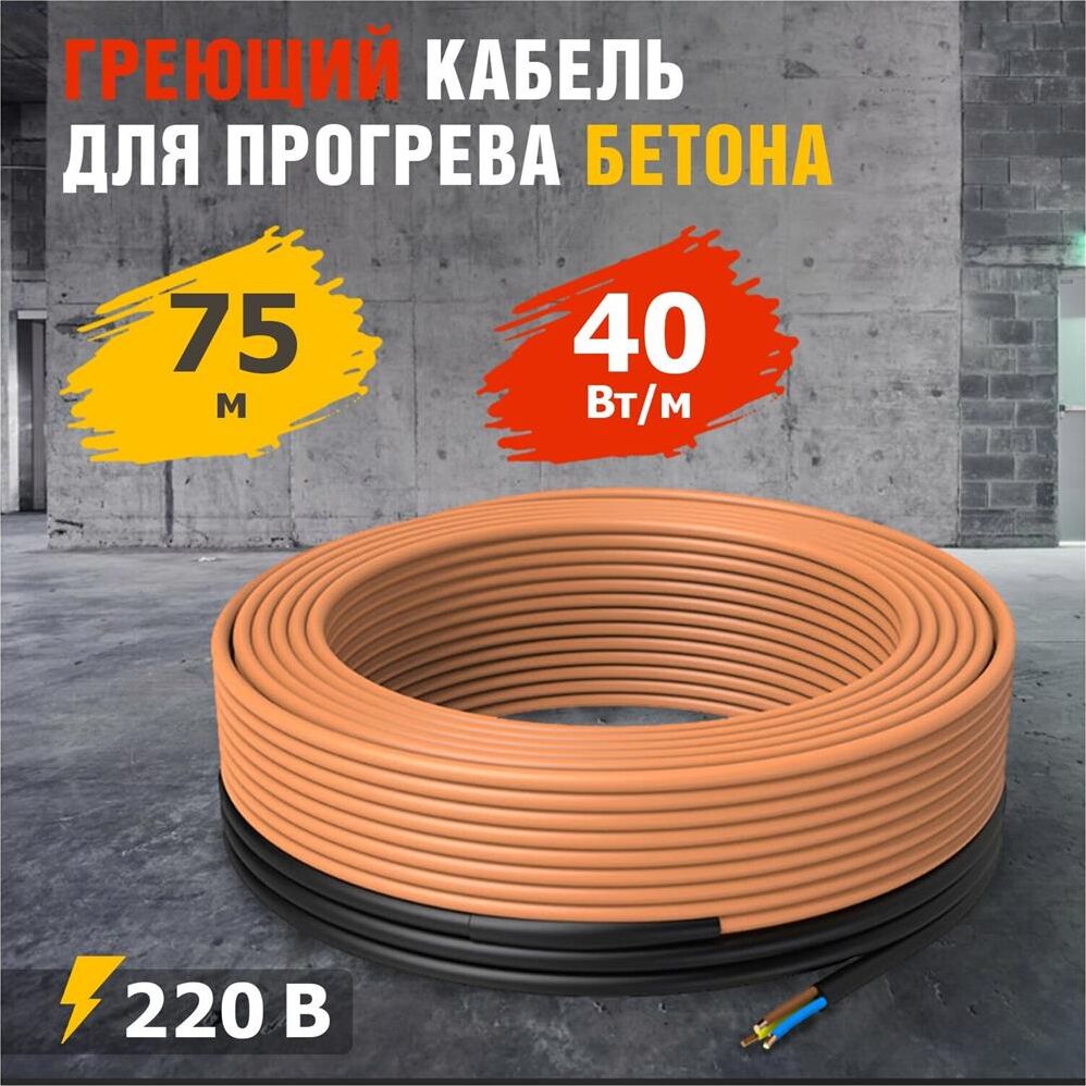 Двухжильный резистивный кабель, мощностью 40 Вт на метр, предназначен для эффективного и равномерного застывания бетона и железобетона при низких температурах.