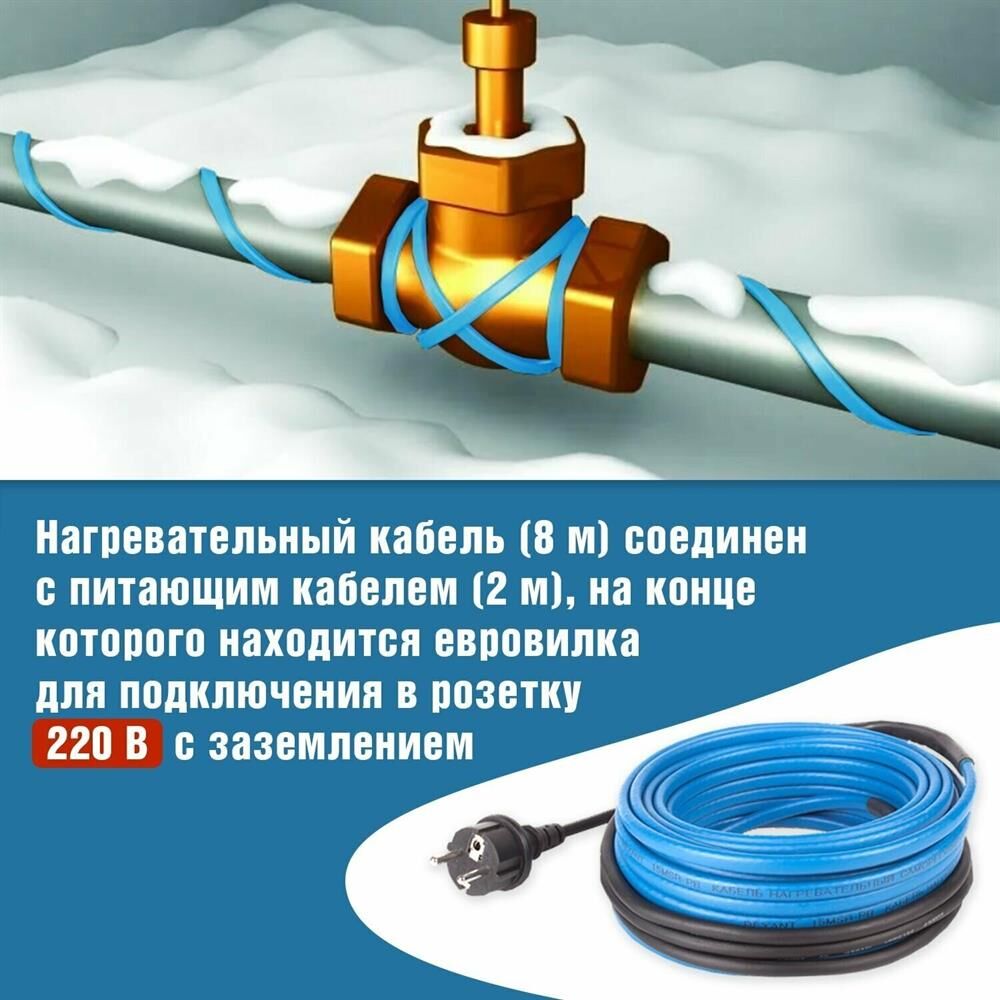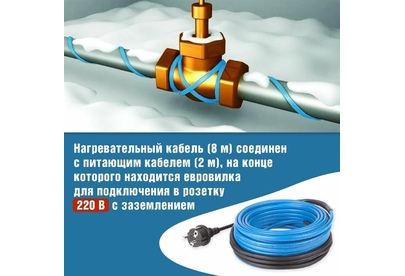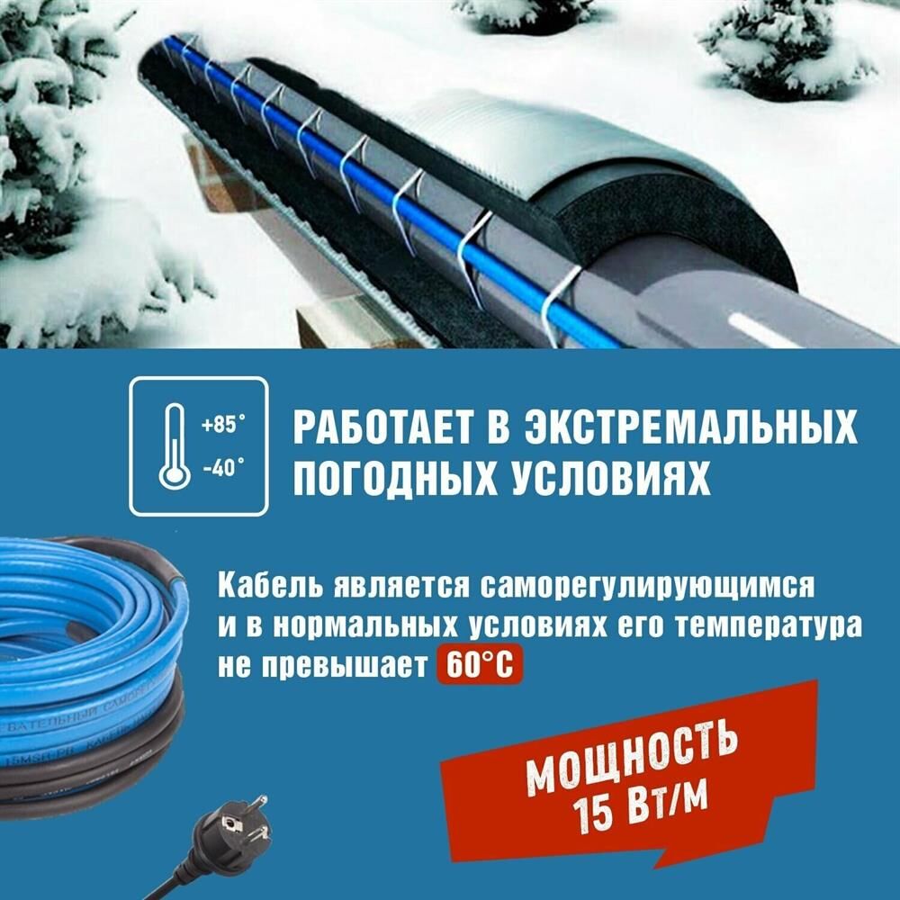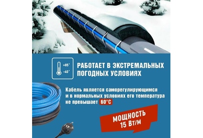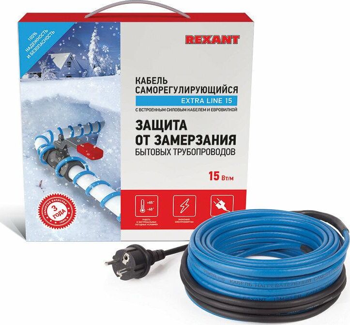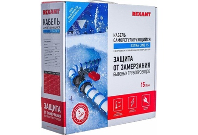 Комплект саморегулирующегося кабеля REXANT MSR-PB предназначен для защиты от замерзания бытовых трубопроводов, счетчиков воды, вентилей и т. п.