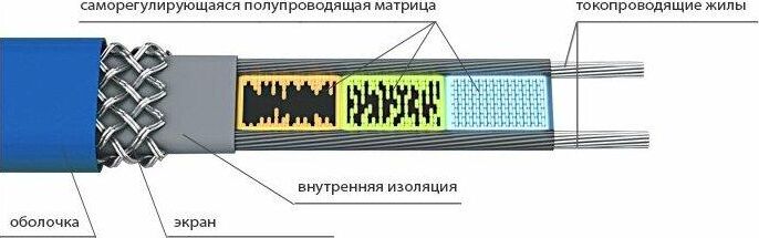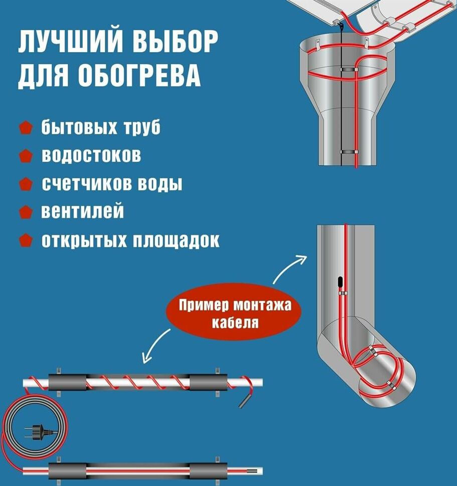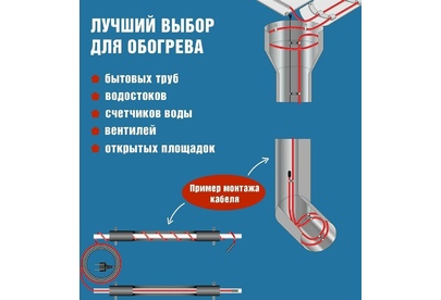Кабель может быть смонтирован на поверхности как металлической, так и пластиковой трубы, под теплоизоляцией.